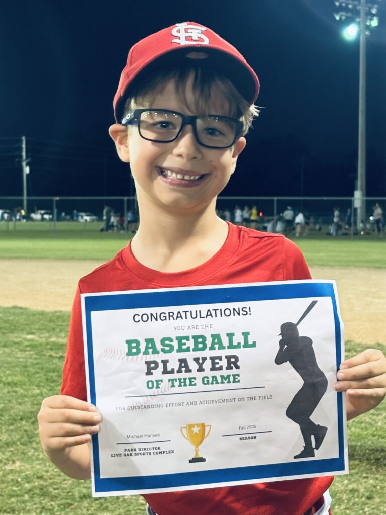 Our regular season baseball games are coming to an end. Congratulations to our hard-working, Week 5 Players of the Game!